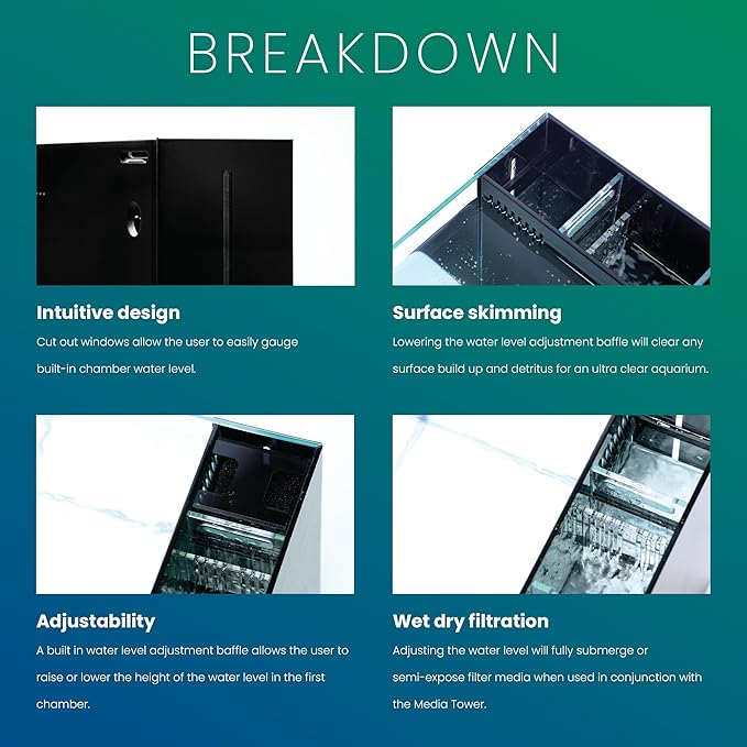 - [All in One Aquarium] Enjoy an integrated ecosystem combining freshwater and saltwater functions. With no additional equipment needed, providing steady flow and complete filtration. Features everything you love about our rimless aquariums, ready to build your own aquarium.