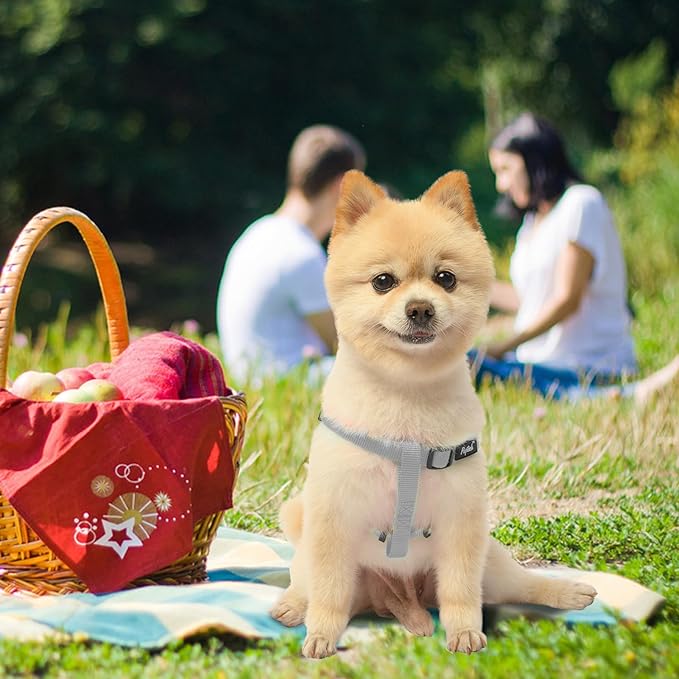 - [Cute ID Tag for DIY] - Each harness is equipped with a metal ID tag, and the front is a cute paw pattern, while on the back, you can engrave whatever you want, such as the dog's name and so on. It does not corrode as easily as wooden labels and is durable. You can also remove it when washing the harness.