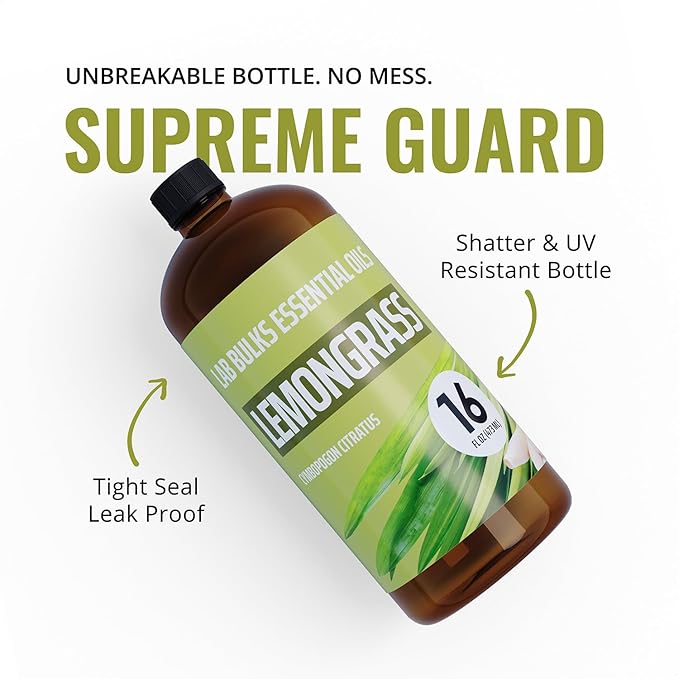 - Premium Quality Packaging: Our lemongrass oil, sourced from India and steam distilled, is bottled in the USA in durable, UV-resistant amber bottles, preserving its quality. These premium-grade essential oils are perfect for diffusers for home or creating aromatic sprays