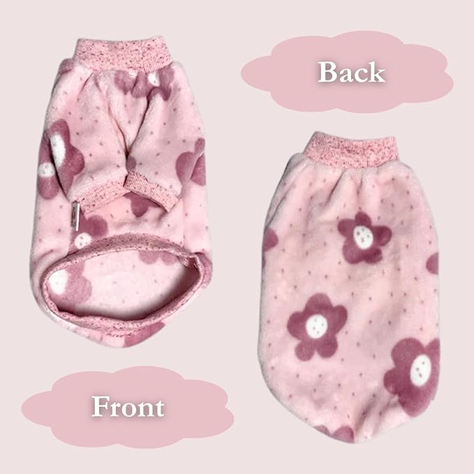 Cat Flannel Floral Clothes, Warm Soft Winter Jumpsuit Flower Prints Sweater Shirt Clothing for Hairless Sphynx, Devon & Indoor Kittens (Pink, S)