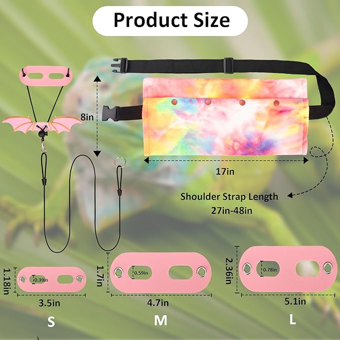 - [Bearded Dragon Leash and Carriers Set] Elevate your bearded dragon's style and comfort during outings with this complete set, which includes a bearded dragon harness and three adjustable leash sizes.
