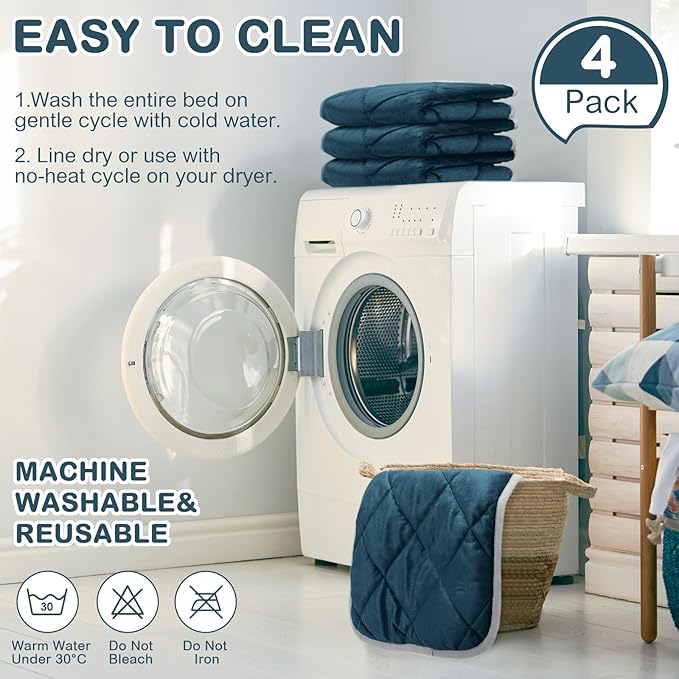 4 Pack Self Heating Cat Pad Self Warming Dog Mat Reflects Body Heat Extra Warm Thermal Pet Pad Washable Dog Cat Bed Crate Bed Mat Blanket (Dark Blue,16 x 20 Inch)
