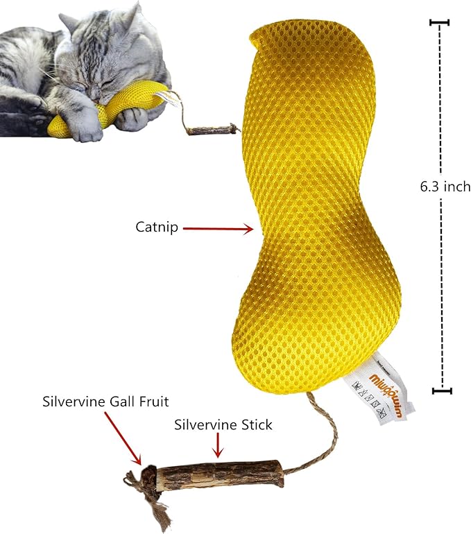 - 【Pure catnip & Silvervine & Gall fruit】The Toys are stuffed with 100% pure, potent and organic catnip inside. Also comes with silvervine and gall fruit tails. The aroma of catnip and silvervine will maximize the chance to make cats excited and make interactive playtime irresistible. Catnip silvervine and gall fruit are all natural herbs, It’s helpful to release your fur babies’ boredom and soothe mind for her.