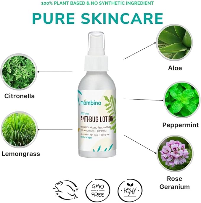 Anti-Bug Lotion DEET-Free – All-Natural Bug Lotion Travel Size Made with Nourishing Essential Oils – Bug Repellent for Babies, Kids, Adults, Camping, & More by Mambino Organics, 4oz