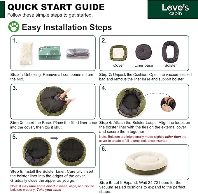 - Design Features: Love's cabin dog beds feature nest-like walls, round pet bed offers a safe, warm cozy place for large dog to snooze.In order to better maintain the shape of the donut nest,our interior filling is 25% more than most competition.