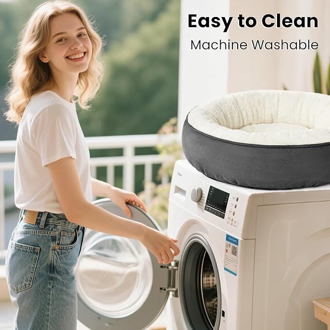 - Donut Cuddler Shape: The round dog bed allows pets to curl up while the raised rim creates a sense of security and provides head and neck support. Premium ultra-soft filling offers joint and muscle pain relief, is a great choice for elderly or sick dog pets. The 30 inch round pet bed is perfect for large dog and other pets up to 45 lbs.