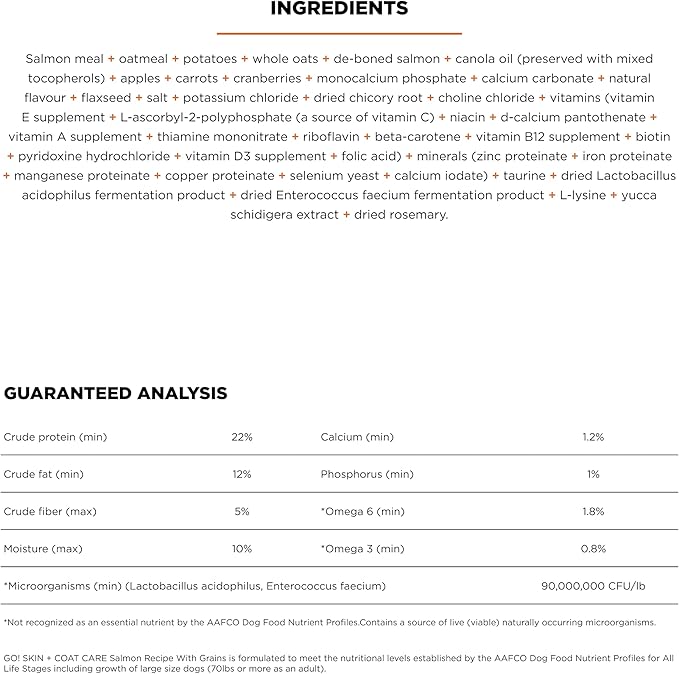 Go! Solutions Skin + Coat Care, Dry Dog Food, Salmon Recipe with Grains, 22 lb Bag