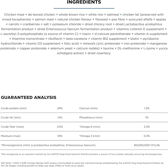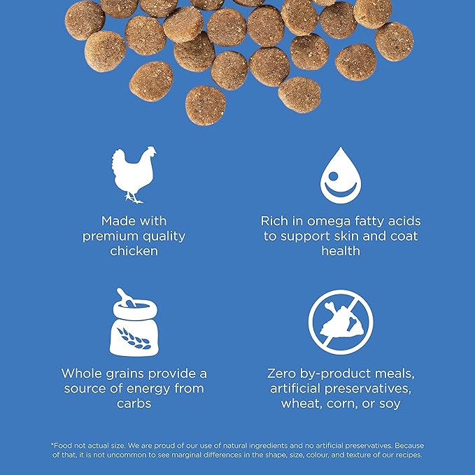 - SUPPORTS HEALTHY SKIN + A SHINY COAT: Premium dog food rich in omega fatty acids from whole ground flaxseed and tasty chicken fat to support healthy, hydrated skin and a shiny coat, and help keep your dog looking and feeling their best.