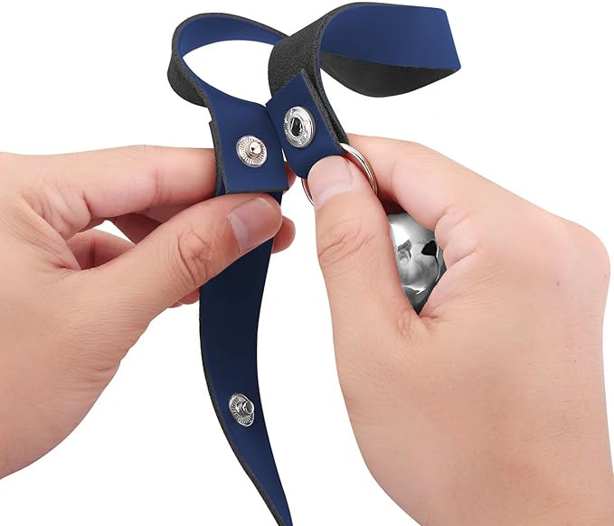 - If you do not want to install a dog door on your own door, this puppy bell will be a good choice, it is easy to use, just hang on the doorknob to start interaction with your puppy. Beautiful leather and bell can also serve as a nice decoration, if hanging the bell on the door handle causes inconvenience, you can buy our hook - B08RY66WD2, stick it in a suitable location to hang the bell.