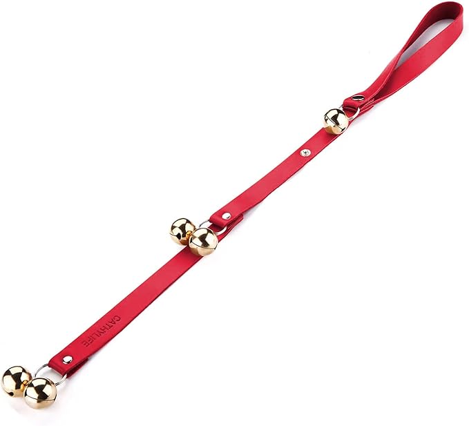 Leather Dog Doorbells for Door Knob/Potty Training/Go Outside, Length Adjustment Copper Dog Bell, Housetraining Hanging Bell, Red Leather Golden Bells.