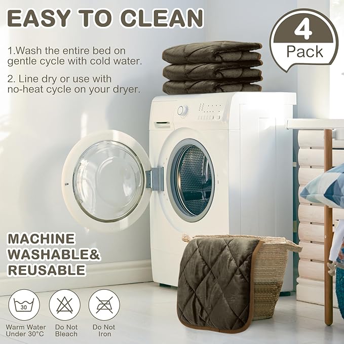 4 Pack Self Heating Cat Pad Self Warming Dog Mat Reflects Body Heat Extra Warm Thermal Pet Pad Washable Dog Cat Bed Crate Bed Mat Blanket(Coffee Color,16 x 20 Inch)