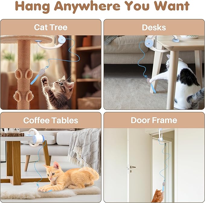 - ๐๏ธ๐๏ธใ๐๐ป๐ด๐ฎ๐ด๐ถ๐ป๐ด ๐ ๐ผ๐๐ถ๐ผ๐ป ๐ณ๐ผ๐ฟ ๐๐ป๐ฑ๐ผ๐ผ๐ฟ ๐๐ฎ๐๐ ใHang the interactive cat toys for indoor cats to a door frame or handle and watch them wiggle and dance when your cat interacts with them. With just one captivating toy, you can provide an entertaining play experience for your beloved feline, helping to reduce boredom and anxietyโideal for when you're not at home.