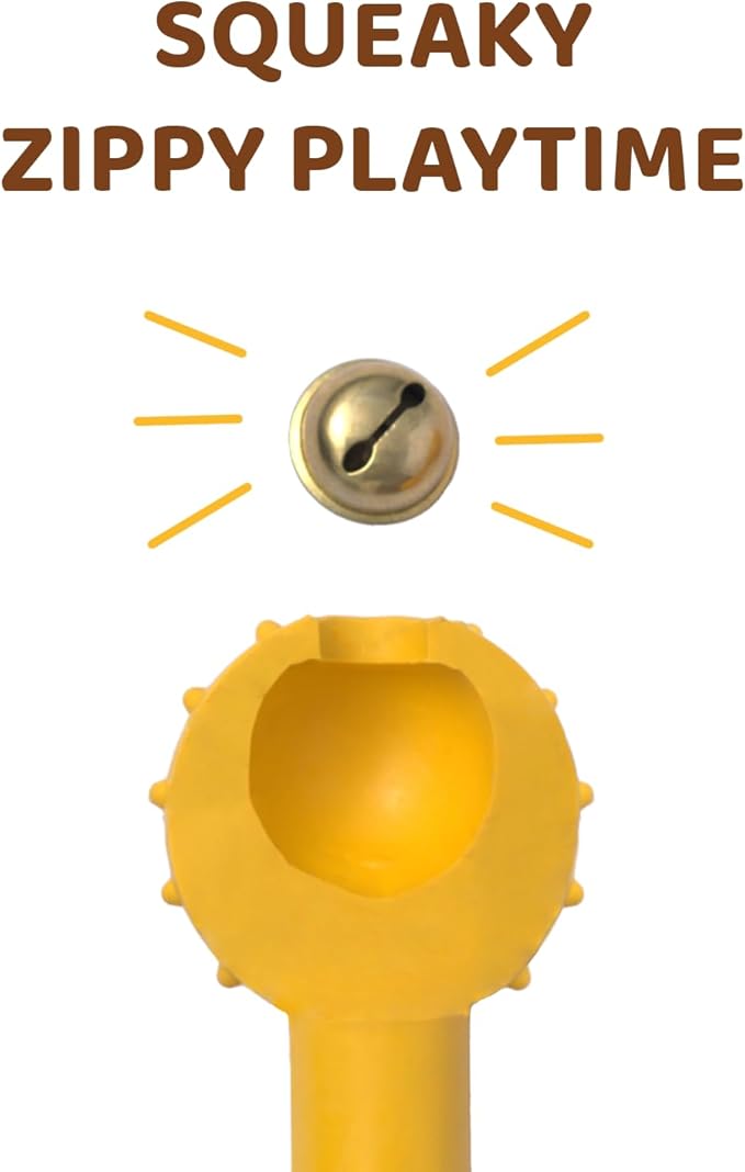 - 🐾 SQUEAKY, ZIPPY PLAYTIME: It's playtime with a twist! Our dog squeaky toys feature bells that ring in delightful sounds, sparking your dog's playful spirit. Perfect for teething, restlessness, and a dose of mental and physical excitement. These indestructible dog toys are designed to keep your dog entertained for hours.