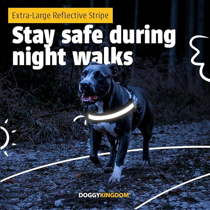 - MAXIMUM NIGHTTIME VISIBILITY - Our unique, extra-large 3M reflective stripe keeps your dog visible at night. Additionally, our heavy duty dog harness features a durable buckle and a stainless-steel D-ring for improved security.