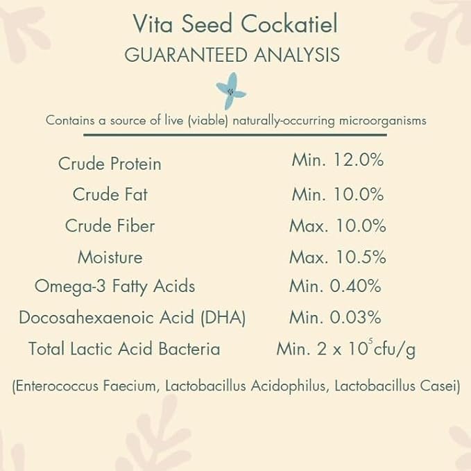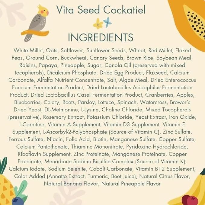 - Bundle Includes: Two (2) 2.5 lb bags of Higgins Vita Seed Cockatiel Food and (1) Aurora Pet Wipes (10 ct).