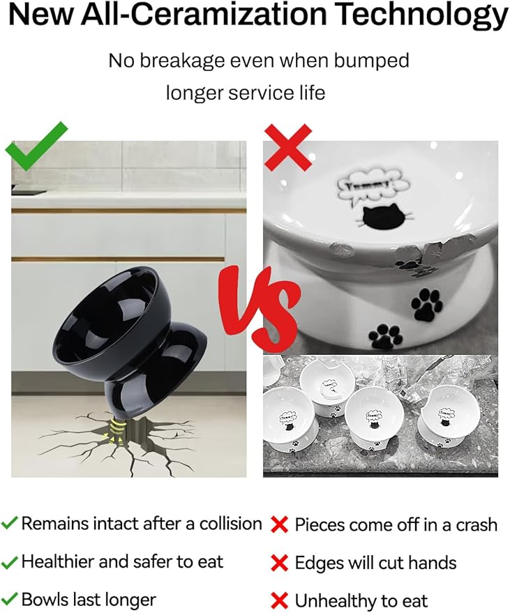 - HARDER CERAMIC TECHNOLOGY: Featuring advanced harder ceramic technology, this elevated cat food bowl is more durable and long-lasting compared to other ceramic bowls. Made from high-quality, lead and cadmium-free ceramic, it’s 100% safe for your cat and dishwasher-friendly.