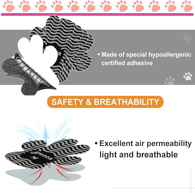 - 🐾【Safety and Breathability】Our dog paw traction pads are made of a special hypoallergenic adhesive. The soft and breathable texture with rubber grips, enhance friction without clogging pores, ensuring your pet's complete safety.