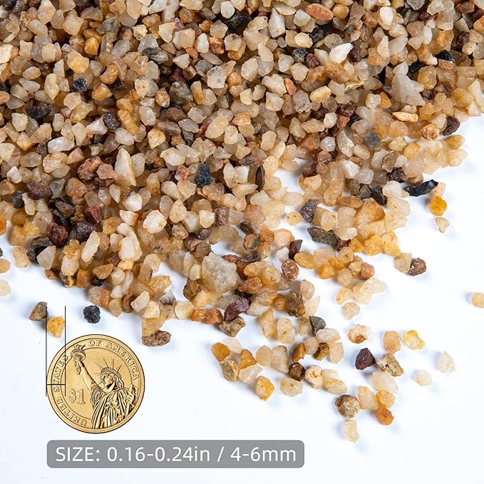 - 【High Quality】: All the silica gravel are collected from riverbeds and crafted without any dyes, harmful material or oils, which are not easy to fade and can be stored for a long time. These beautiful aquariums sand is carefully selected to provide a safe and comfortable environment for your aquatic pets and plants.