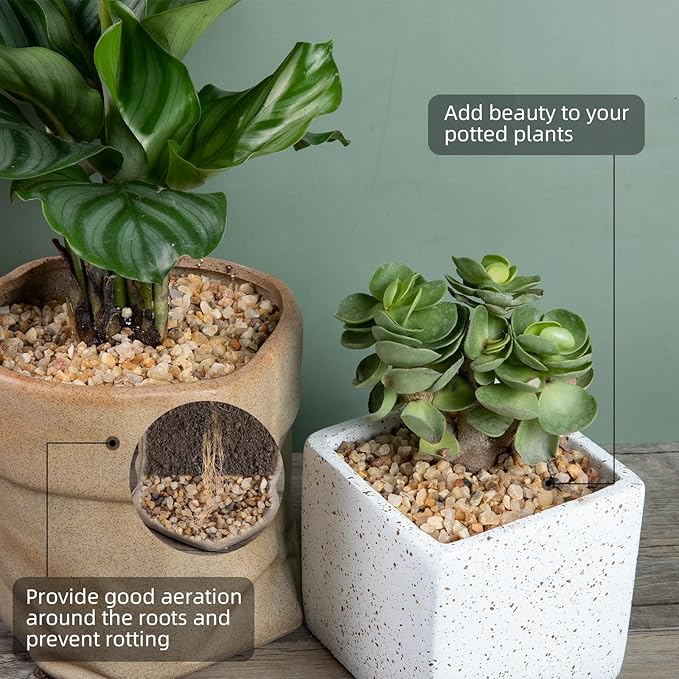 - 【Perfect Size】:These carefully selected silica gravel is about 0.16-0.24 inches on average and vary slightly in shape, creating a more diverse look for your lovely plants, also very easy to store and don't take up a lot of home space.