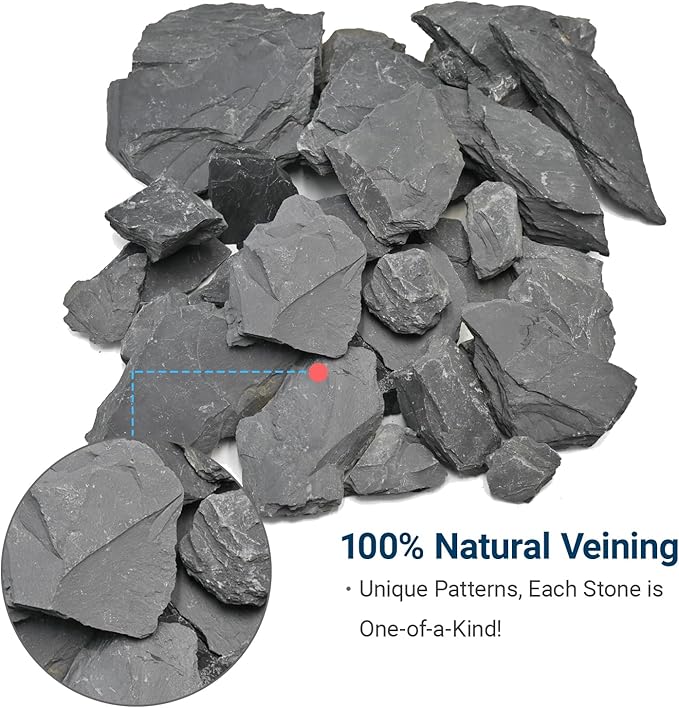- 100% Natural Slate Rock—Made from real natural slate rock with unique textures, perfect for aquarium rocks aquascaping and terrarium decor, adding authentic beauty to your aquatic and terrarium landscapes.
