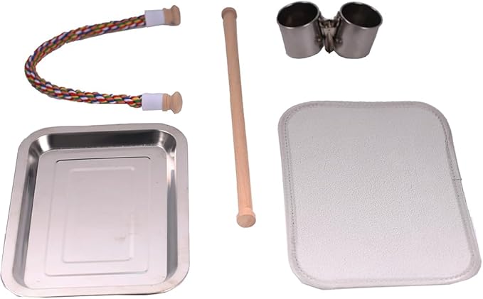 - Package includes 1 bird backpack + 1 metal tray + 1 velvet lined soft mat + 2(TWO) 1 ctton rope perch / 1 wooden stand perch + 1 clamp double-cup