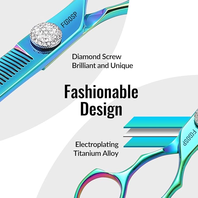 - 💝Personalized and Fashionable Design: The dazzling grooming scissors is convenient for you to quickly find among a pile of pet scissors. Accompanied by a big artificial diamonds screw, it is noble, fashionable, and unique. Symmetrical handle design, can be used for upward bending, with a large amount of down hair and efficient shearing; It can also be used by bending down, with a soft and fluffy cutting feel. A good pair of scissors brings you far more benefits than four normal scissors.