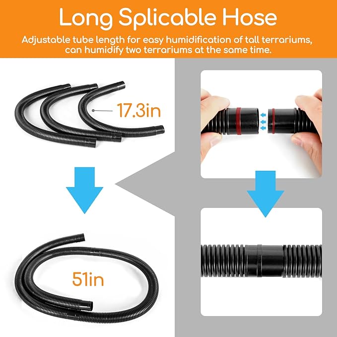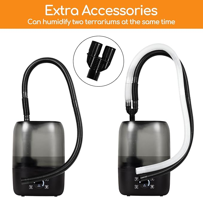 - 【Double Splicable Tubes】Coming with 3PCS white 17.3inch tubes and 3PCS black 17.3inch tubes, you can splice as many lengths as you need. Upgraded tubes with increased hardness can effectively avoid the problem of water pooling in water tubes. Support humidify two terrariums at the same time.