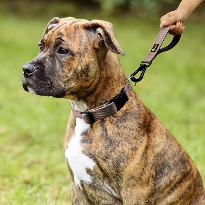 PLUTUS PET Short Dog Leash, Reflective Nylon Padded Handle, Strong Traffic Leash with Carabiner Clip, Perfect for Large or Medium Dogs (10”,Beige)