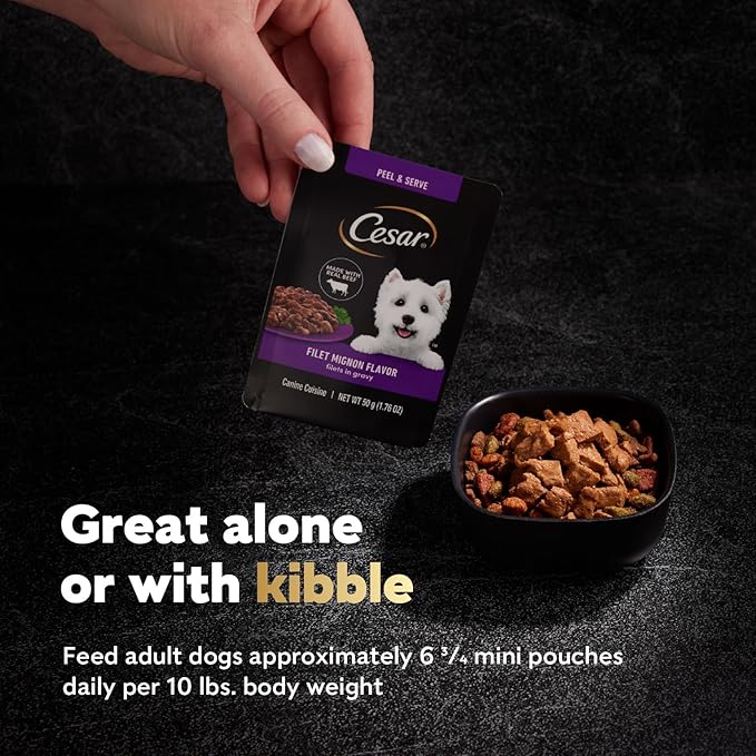 Cesar Filets in Gravy Wet Dog Food Filet Mignon Flavor and Rotisserie Chicken Flavor Variety Pack, 1.76 oz. Mini-Pouches (20 Count, Pack of 2)