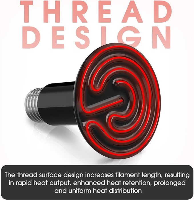 - 【Versatile Heat Lamp for Pets】Our black reptile heat light bulbs are designed to cater to a wide range of animals. Whether you have reptiles, birds, chicks, small mammals, or other pets, this versatile heat lamp provides the ideal temperature and comfort they need.