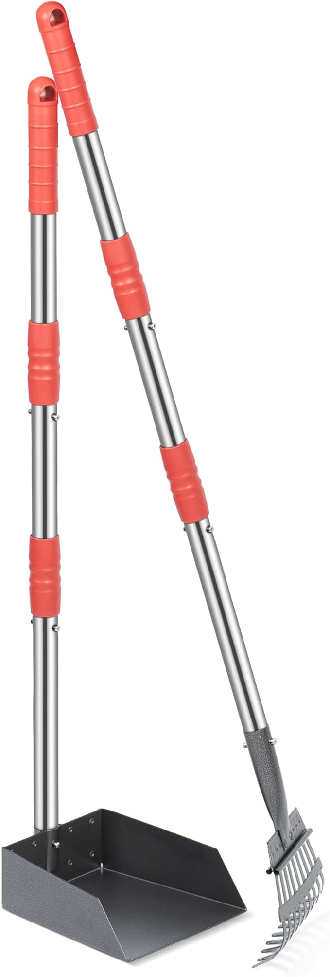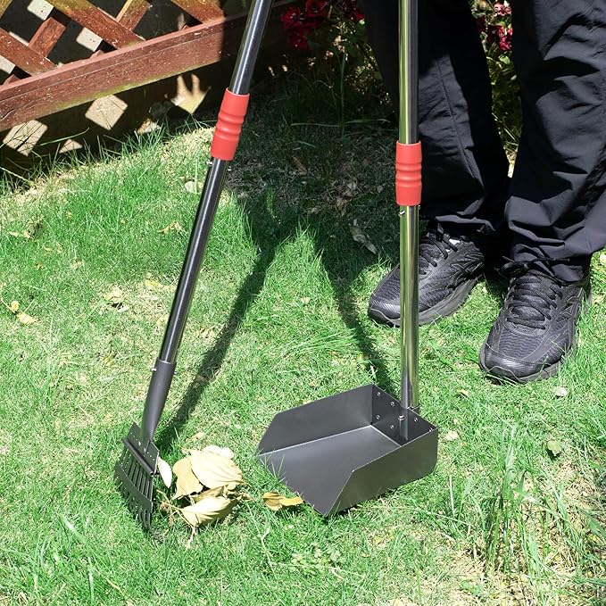 Heeyoo Dog Pooper Scooper, Dog Poop Tray and Rake Set, Pet Waste Removal Scoop with Long Adjustable Sectional Stainless Handles