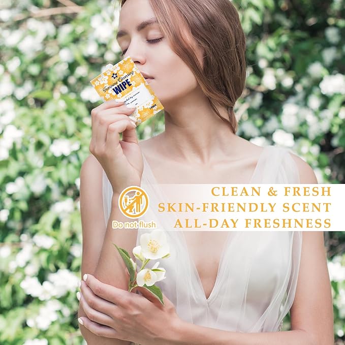 - Natural Ingredients: you can trust our feminine wipes for women to be as natural as they can get; Infused with jasmine extract, each wipe preserves the authenticity of its main material, helping you maintain a clean and balanced lifestyle; The blend of natural elements in our wipes brings together the better of skin friendly care whilst offering a natural cleanliness approach; The main yellow package is not just visually appealing but symbolizes the assurance of hygiene with a touch of luxury