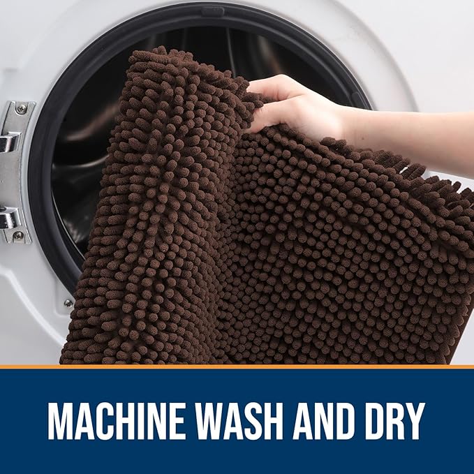 OLANLY Dog Door Mat for Muddy Paws 47x32, Absorbs Moisture and Dirt, Absorbent Non-Slip Washable Doormat, Quick Dry Chenille Mud Mat for Dogs, Entry Indoor Entryway Carpet for Inside Floor, Brown