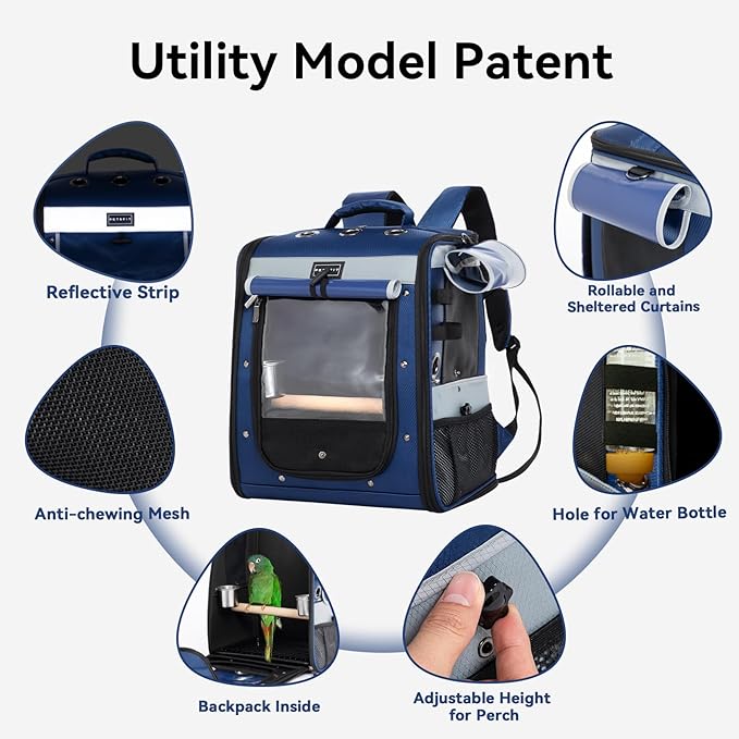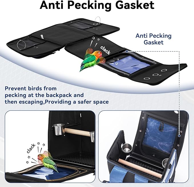 - Anti-pecking Design: Our bird backpack is different from others, there is an anti-pecking band in front of the door, this is our patent, so that will be more durable to prevent escaping and prevent being pecked