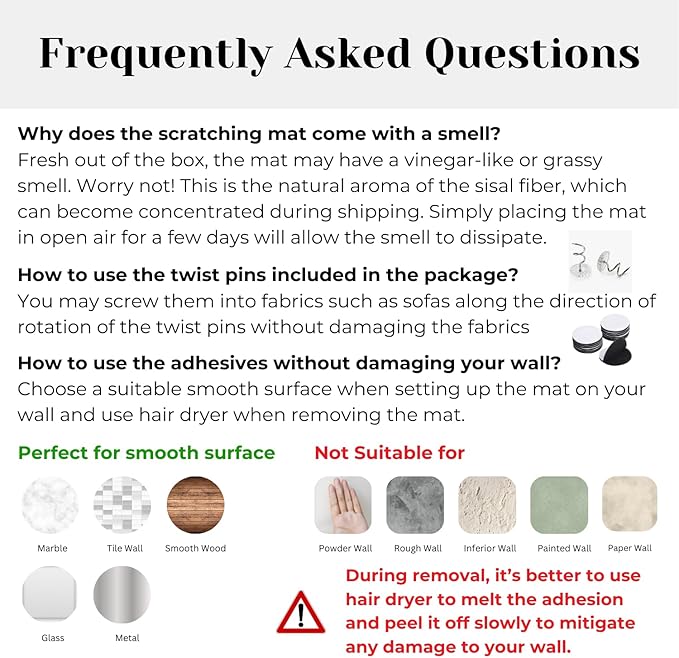 - Eco-friendly & Safe for Cats: Made from 100% natural sisal fibers and print ink free from harsh chemicals and toxins, our cat scratcher mat is eco-friendly and safe for both your cat and the environment.