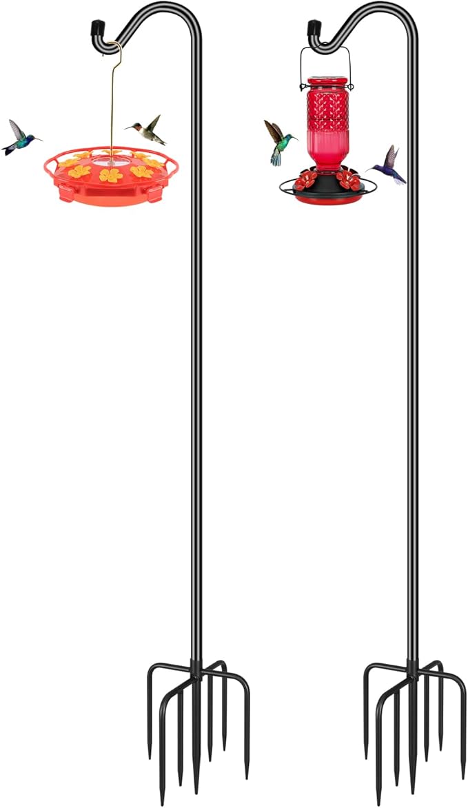 FEED GARDEN Adjustable Shepherd Hook Bird Feeder Pole with 7 Prongs Base, 108 Inch Tall 5/8 Inch Thick, Heavy Duty Outdoor Garden Poles for Hanging Bird Feeders, Plant Baskets, Black (2 Pack)