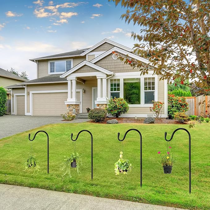 - Multifunctional Decor Piece: offer your outdoor environment a touch of elegance with our multifunctional shepherds hooks for outdoor 24 inch; They are perfectly suited to hang flower pots, solar lights, lanterns, garlands, candlesticks, string lights, wind chimes, bird feeders, among other items, adding enchanting vibes to your personal space; You can decorate your flower beds, walkways, or shrubbery