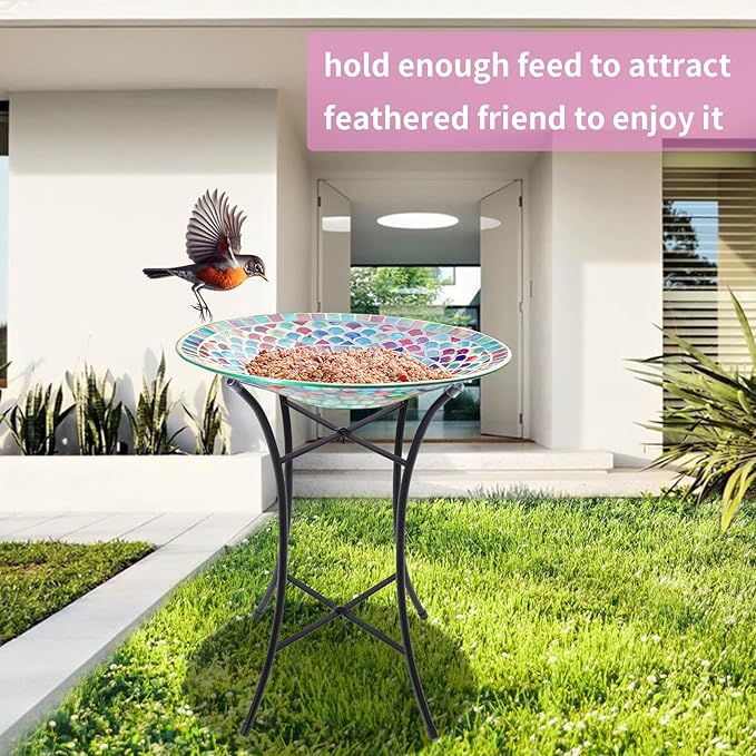 - Best Gift: Looking for the perfect gift for nature and bird enthusiasts? Our mosaic glass bird bath is both a beautiful ornament and a functional bird bath and feeder. It's an attractive addition to any garden, sure to delight any recipient