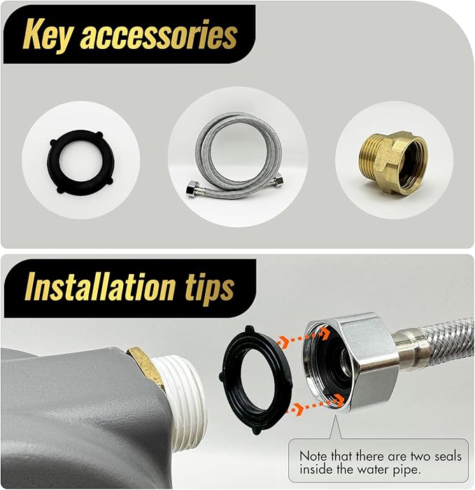 - Friendly Reminder: 1.In areas with high water pressure, the valve may malfunction. Please contact customer service for return. 2. If there is any water leakage at the hose connections, Please put two two"O"sealing rings in the copper connector. Copper connectors and "O"-ring seals are crucial components for addressing potential leaks. If it still leaks, consider the thread is not suitable