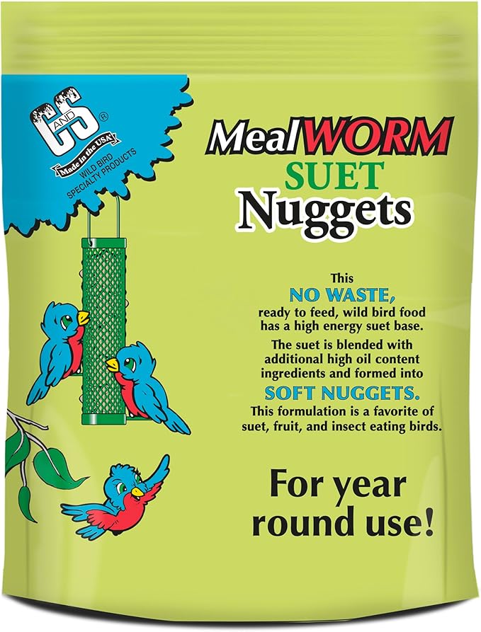 - A VERSATILE FEEDING SOLUTION. C&S Mealworm Suet Nuggets can be fed alone or mixed with 5-10 lbs of wild bird seed mix.