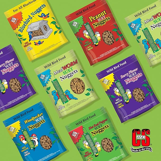 - A CLEANER AND EASIER WAY TO FEED SUET. C&S Mealworm Suet Nuggets are the perfect solution for feeding suet without the unpleasant feeling of touching a greasy suet cake.