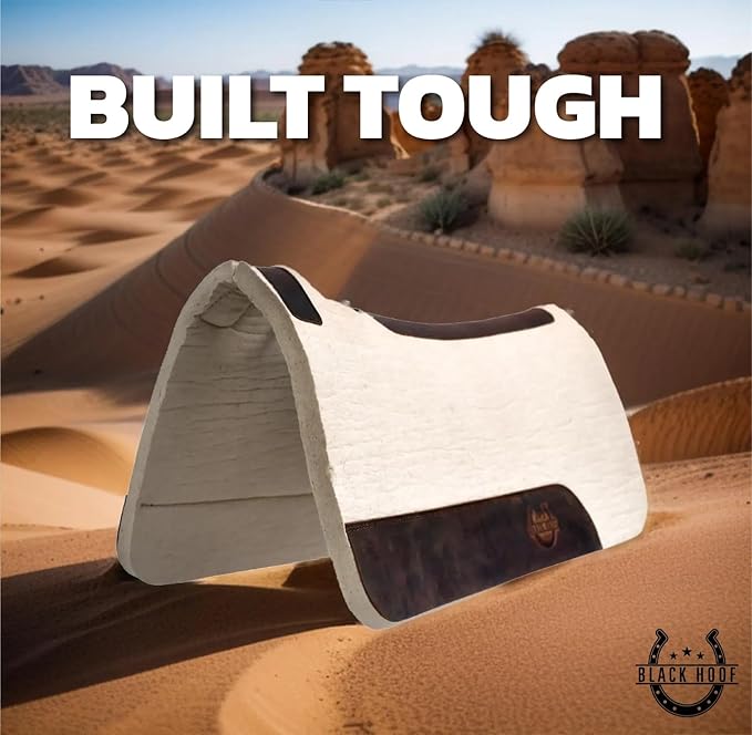 - PREMIUM MERINO WOOL FOR SUPERIOR COMFORT Crafted with 100% steam-pressed Merino wool felt, this saddle pad provides exceptional softness and cushioning. The high-quality wool minimizes pressure points and ensures your horse enjoys maximum comfort during every ride.