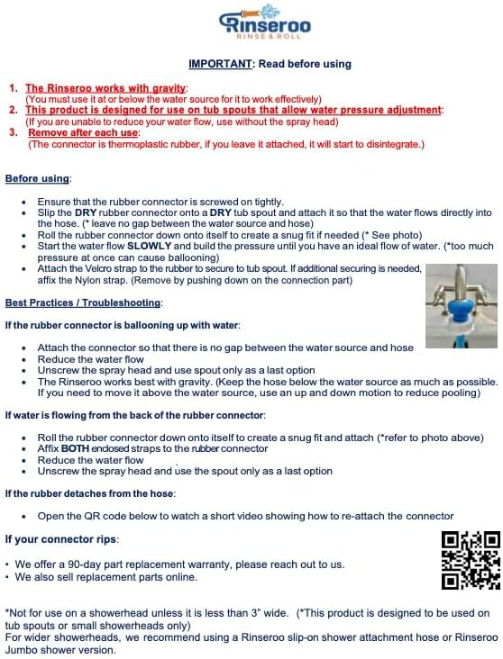 - Before You Buy: Adjust water flow for best results; if you can't, use it without the spray head. Always remove the shower hose after use. The faucet hose adapter works best when used at or below the water source. Secure the Velcro strap close to the water source to avoid leaks & bubbling.