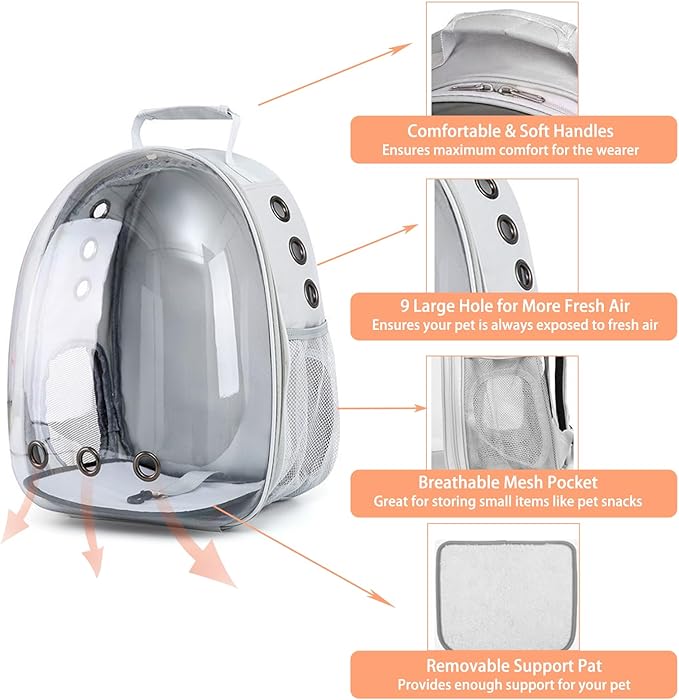 - Comfort & Security - The CUTENNIOU Pet Carrier Backpack features a unique and modern design, with a clear bubble window that allows your cat or puppy to have a wide view while being safely enclosed, giving them a sense of security. The transparent window design provides an engaging interactive experience for your pet. The included mat makes traveling more enjoyable for you and your furry friend.
