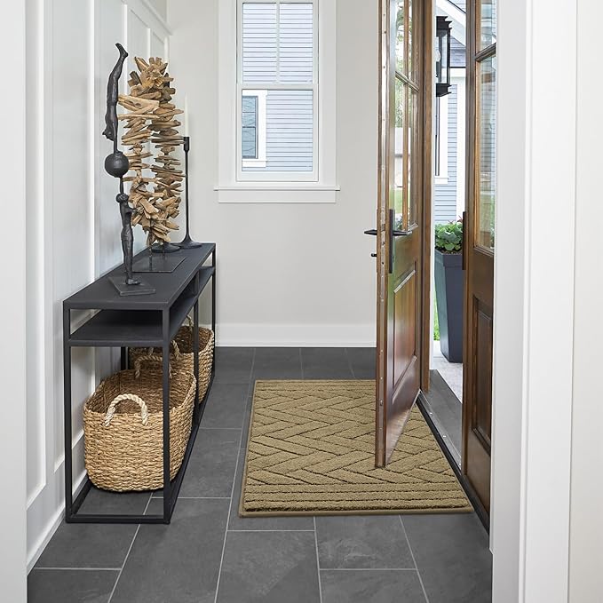 - Absorb Moisture and Dirt:Tindbea indoor dog mat for muddy paws is crafted to efficiently remove dirt and swiftly absorb moisture. With our doormat, your shoes will be instantly free of any water, dust, grit, muck, sand, sleet, grass, slush, rain, or snow upon entering the house. It's an excellent choice for use as an entryway door mat, a delicate door mat, or a dirt-trapping mat.
