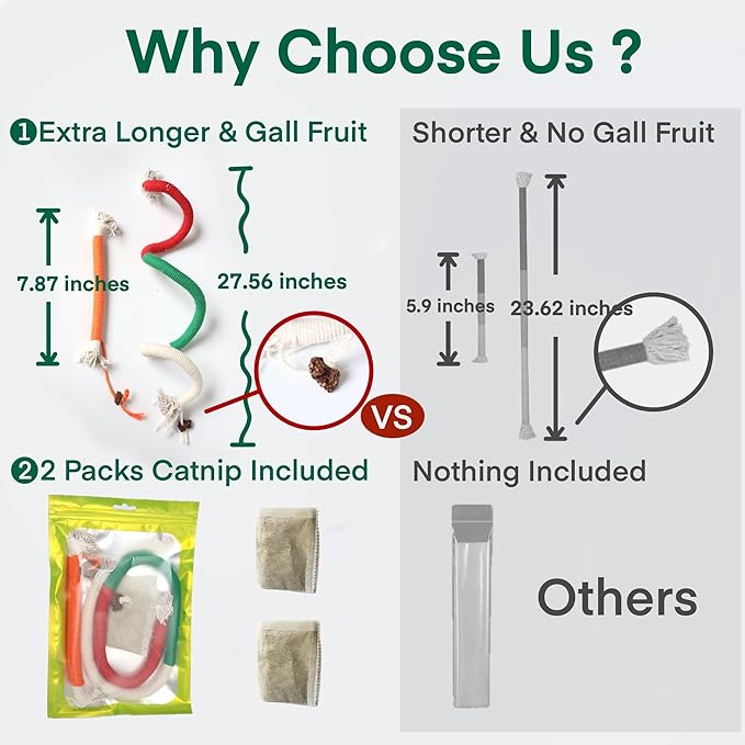 - Secure Cat Rope Playthings-- Handcrafted from carefully selected cotton ropes, our set of rope toys ensures safety without any iron wire. Enhanced with Natural Silvervine gall fruit tails, they're perfect for cats to chew and bite without worries