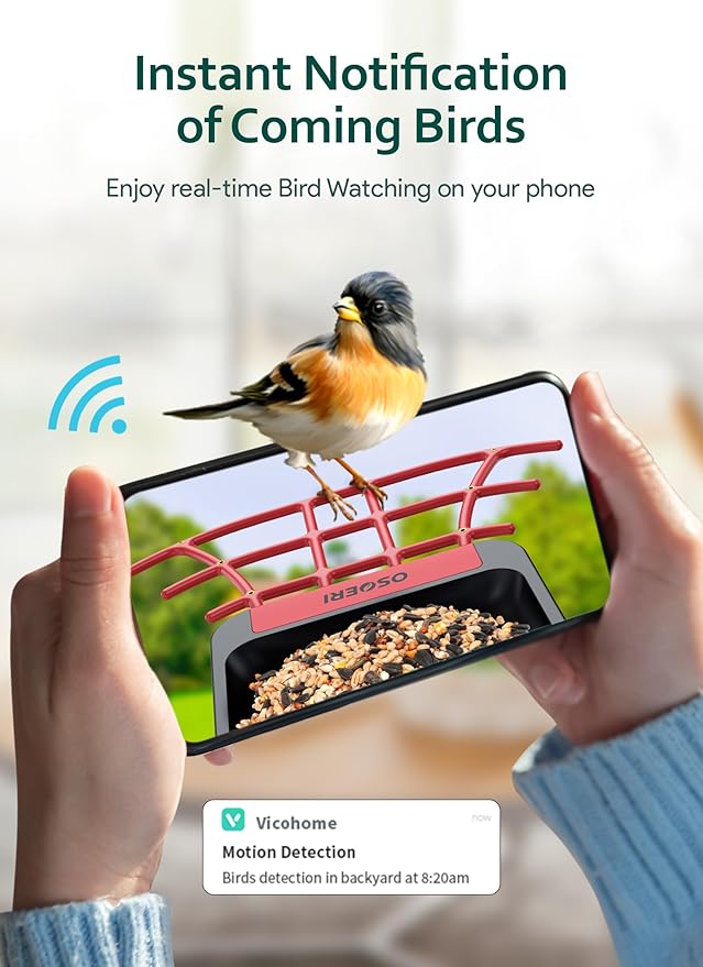 - 【Motion Detection & Real-time Notifications】Our smart bird cameras will send you instant notifications every time your bird feeders detect new birds, keeping you informed of birds visiting your yard, ensuring you never miss any interesting moments. You can easily view live feeds and playback recorded videos from your smartphone