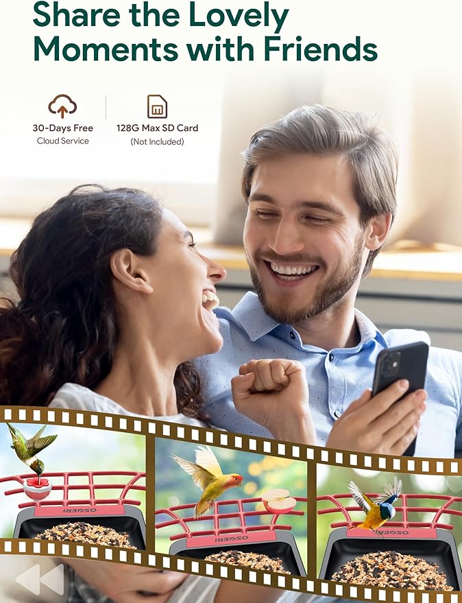 - 【Share to Families & Perfect Gift for Bird Lovers】Our smart bird feeder with camera with 30 days cloud storage, you can share every wonderful moment with your family and friends. It's an ideal gift for bird enthusiasts and nature lovers who enjoy watching and studying wild birds up close