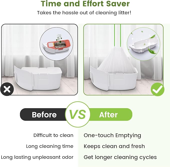 - Durable & Keep Poop Bin Fresh: Sturdy tear-resistant with a non-heat-sealed bottom that holds up to 20 lbs without breaking or leaking, keeps the bottom clean without long-lasting unpleasant odors, say goodbye to the hassle of frequent litter box cleanups