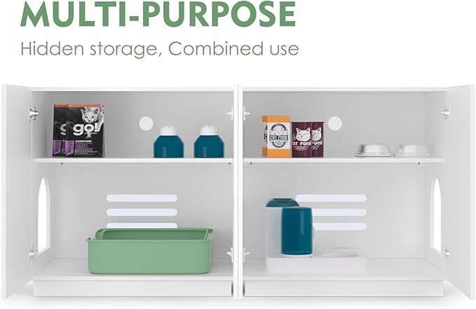 Large/Tall Litter Box Enclosure, Modern Wooden Litter Box Furniture for XL Litterbox with Hidden Storage as Sideboard Cabinet (White)